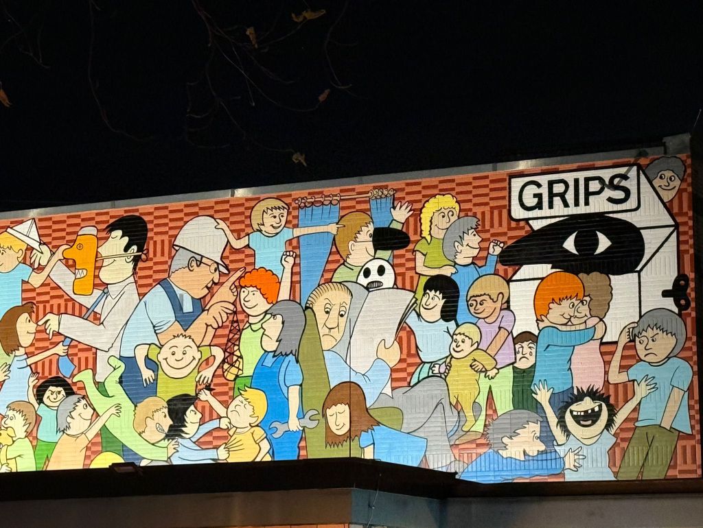 Pünktlich zu Weihnachten hat das GRIPS Theater sein berühmtes Wandbild an der Altonaer Straße im Hansaviertel feierlich eingeweiht. Das 145 Quadratmeter große Kunstwerk des Berliner Zeichners und Karikaturisten Rainer Hachfeld (1939–2024) wurde nach einer aufwendigen Restaurierung wieder in neuem Glanz präsentiert. >>