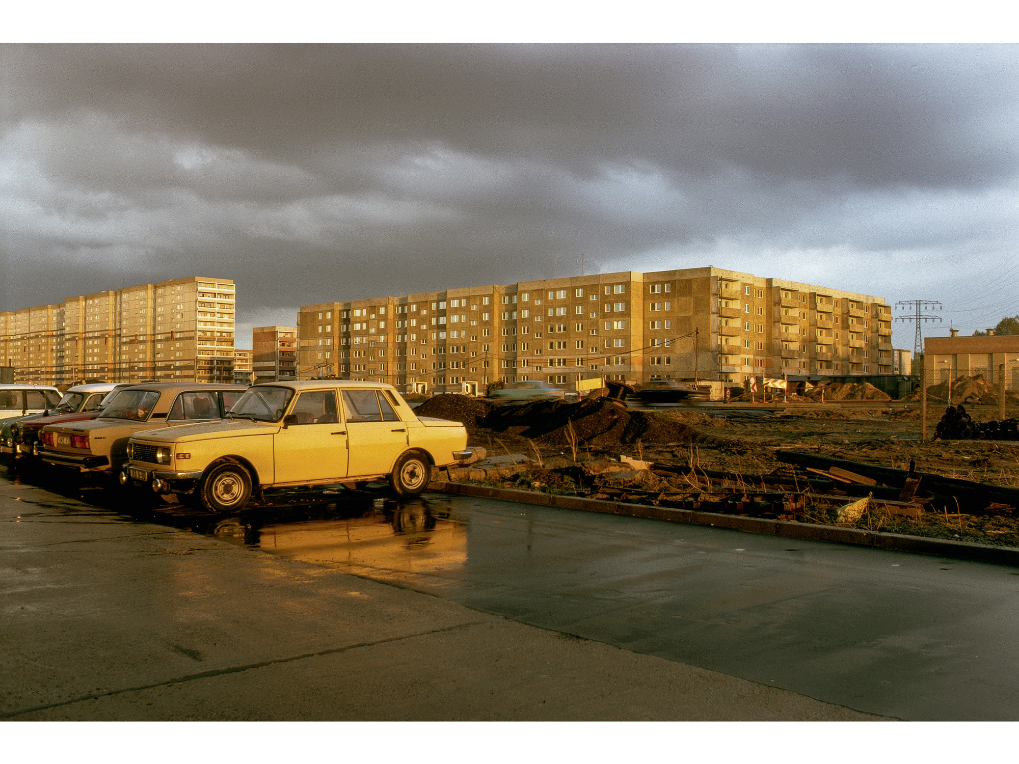 Eine Neubauwohnung versprach: warmes Wasser aus der Wand, Zentralheizung, große Fenster, weiträumige Höfe, erste junge Bäume. Dienstleister von der Krippe bis zur Kaufhalle und zur Schule lagen praktisch ums Eck. Parkplätze gab es en masse, dazu Promenadenwege, Ringstraßen – und, ja, viel zu kühles Licht.